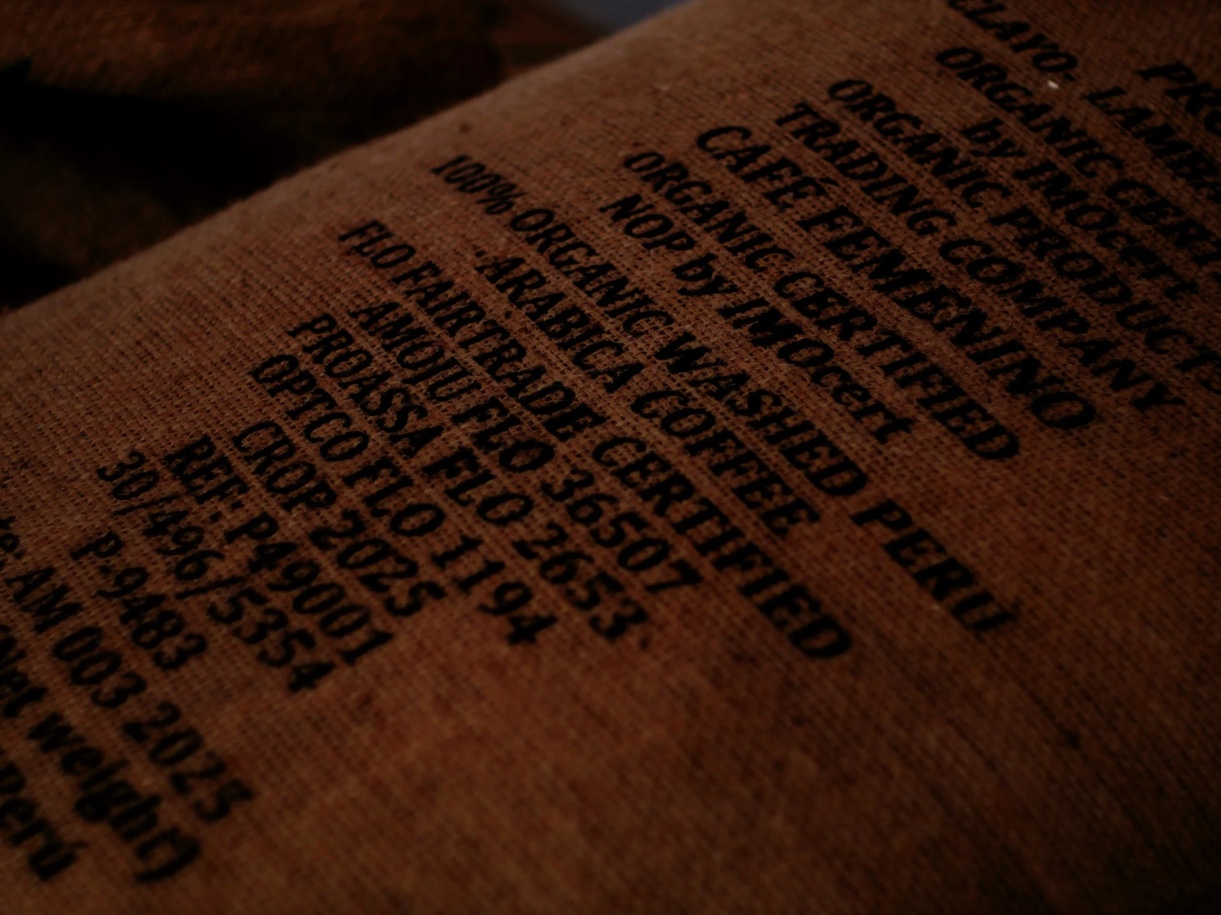 But back to the question of documentation. The various certifications and ethics/sustainability answers are embedded within our invoices, emails to farmers and painted directly upon the burlap bags the coffee travels in. Most of this is really not stuff we can share directly. So it comes down to trust really. I can show one bit of documentation that isn’t readily faked: a photo of our Cafe Femenino Peru which is certified Organic and certified Fair Trade. Our flagship Guatemala holds the same credentials. The ethics of our other coffees are described in each offering.